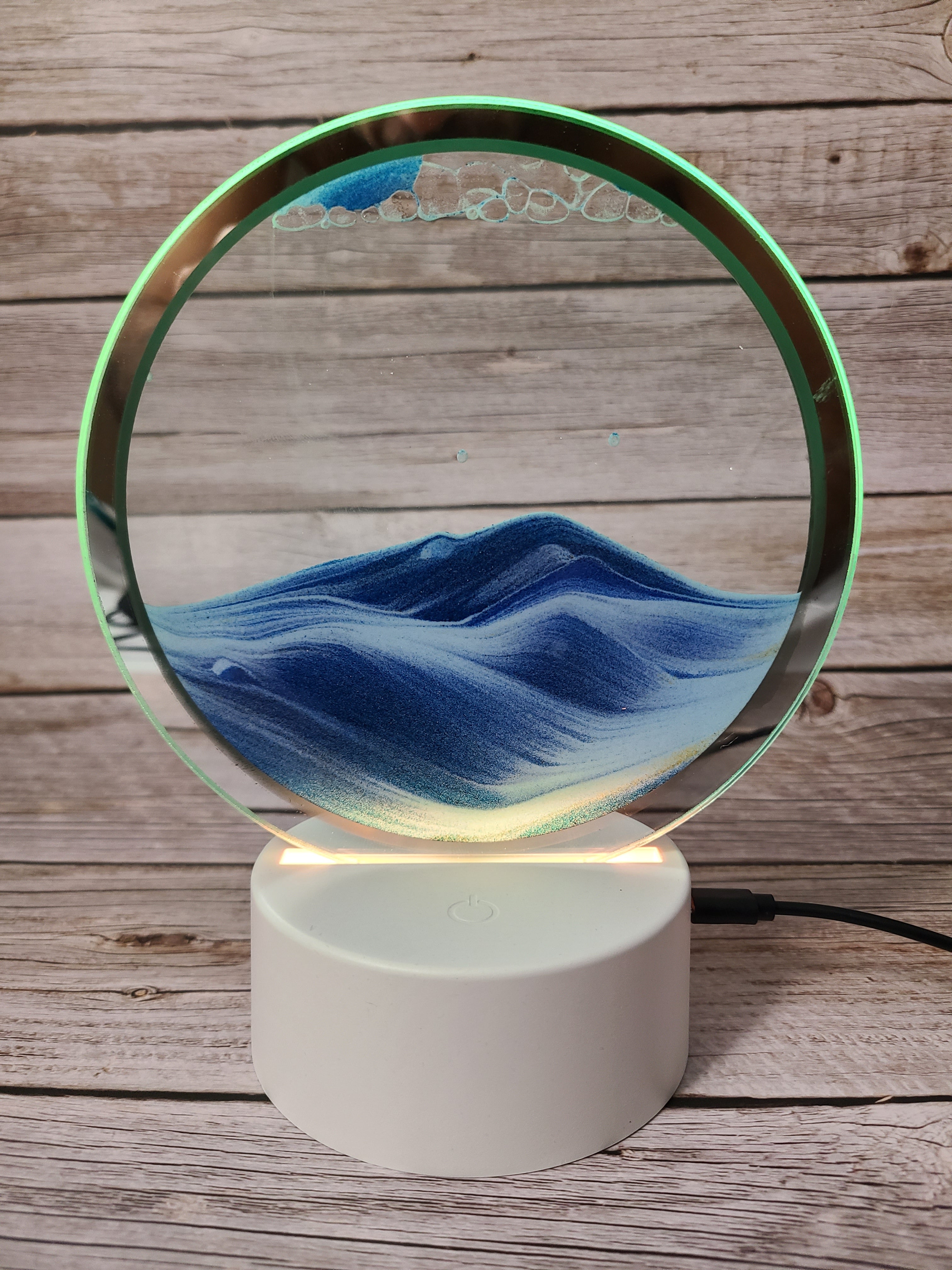 This unique and exemplary lamp is designed to provide you with a spectacular light-up experience, while at the same time making you feel stress free and and leaving you in awe. Have a multi color change and operated by usb connection. As the sand slowly pours from the hourglass, beautiful scenery is displayed along with a beautiful light-up scene.