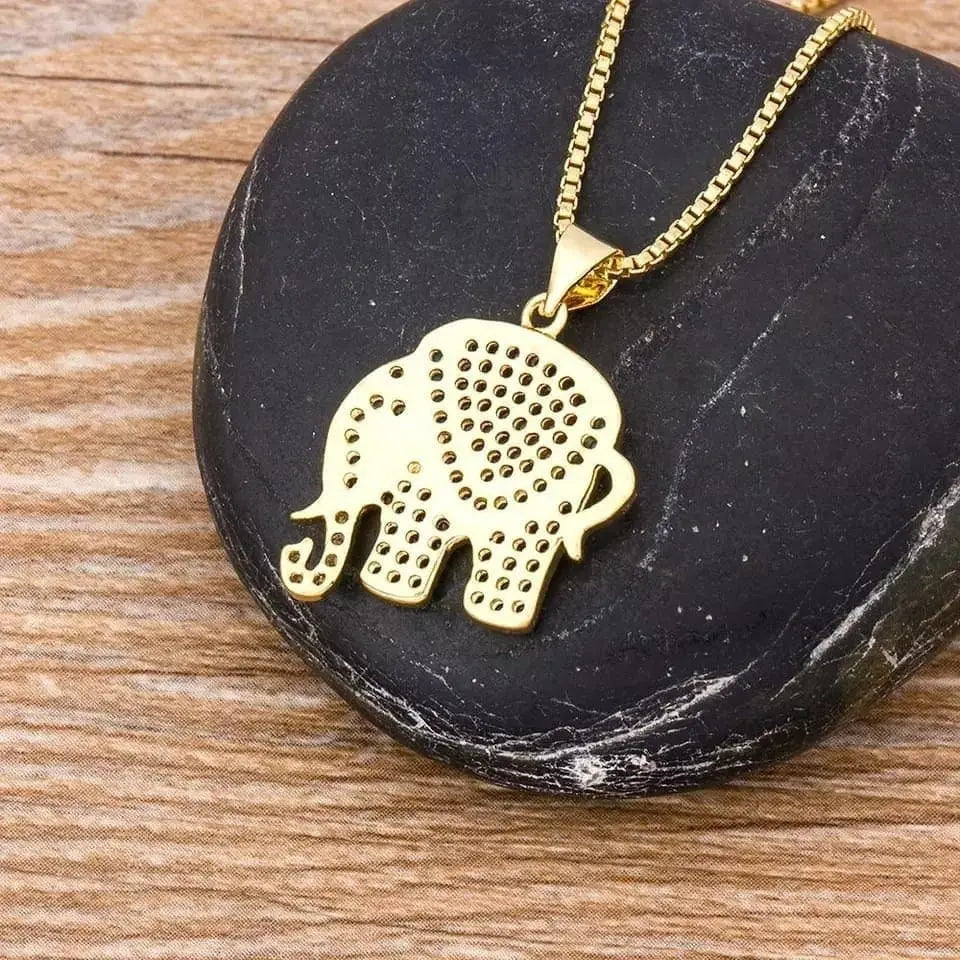 Looking for a cute elephant necklace that looks great with any outfit? Well this adorable, gold colored elephant necklace is the most perfect, precious piece to wear around! This elegant elephant is made of alloy and hangs on a gold-plated chain. Gold outlines the shapes of his body and the rest is covered by colorful stones of pink, black, green, orange, silver, blue and gold. Aside from its beauty, this elephant necklace is also filled with both meaning and symbolism as elephants are well-known for their patience, wisdom, power, and strength. This animal necklace is adjustable and measures 16 inches to 18 inches. The elephant pendant measures 1.5 centimeters. This gold elephant necklace makes the perfect gift for people who love elephants or for yourself. Size: 16" to 18" long adjustable chains Material: Alloy Please visit my shop to browse more items. Thanks for stopping by!